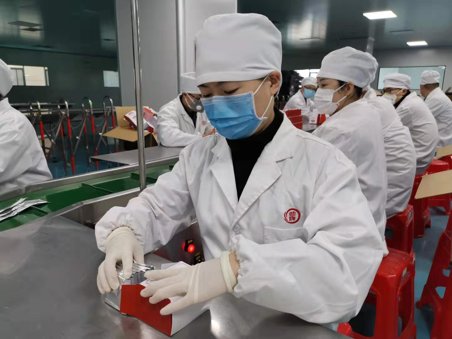 來自體驗(yàn)服務(wù)部的汪夢(mèng)露看到征召通知后,立即電話聯(lián)系報(bào)名事宜。她參加了第一批晚班的包裝生產(chǎn),換上白大褂投入到包裝生產(chǎn)中。“能參加防疫藥品的生產(chǎn)是一件很光榮的事!”“公司贈(zèng)送給我們的預(yù)防藥都是車間同事加班加點(diǎn)生產(chǎn)出來的,他們很辛苦,自己符合報(bào)名條件,就想去替換下他們。”